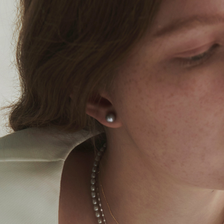 淡いグレーのヴェールを纏ったパールは成熟の美をたたえ、耳元で揺らめく流麗なフォルムとともに、知的な表情を実現します。