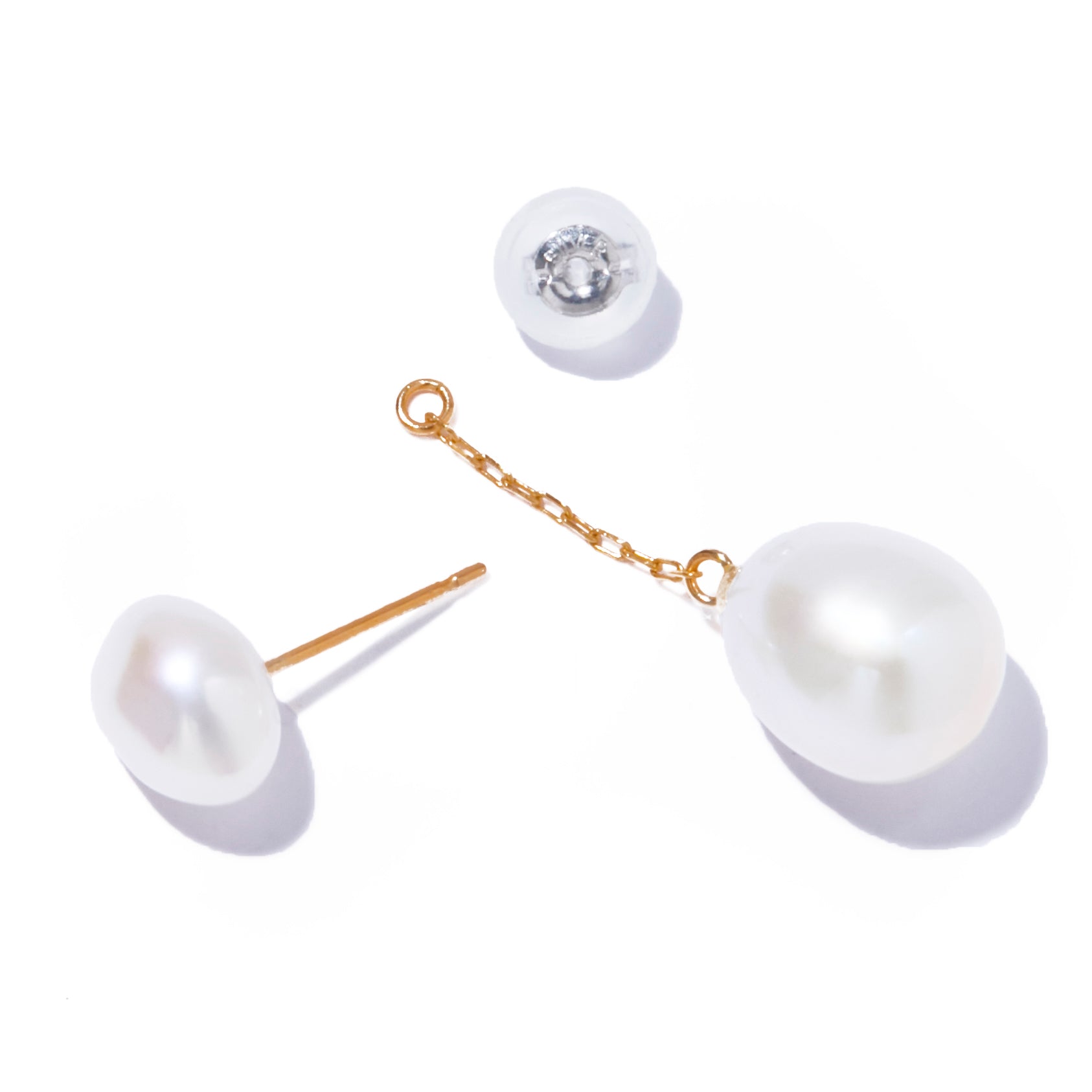 チェーン部分を外せば、シンプルなスタッドピアスとしても楽しめる仕様。