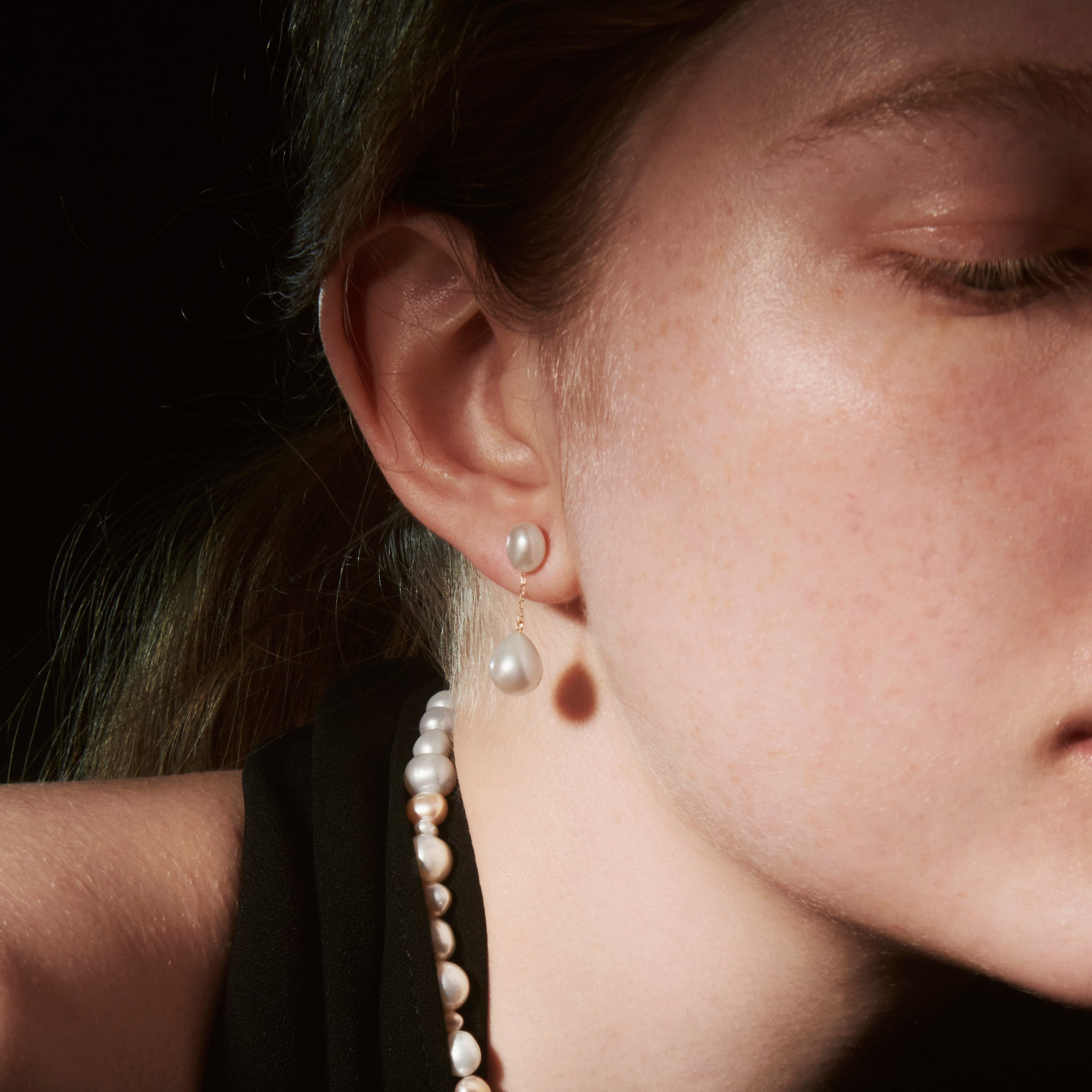 organic double pearl pierce