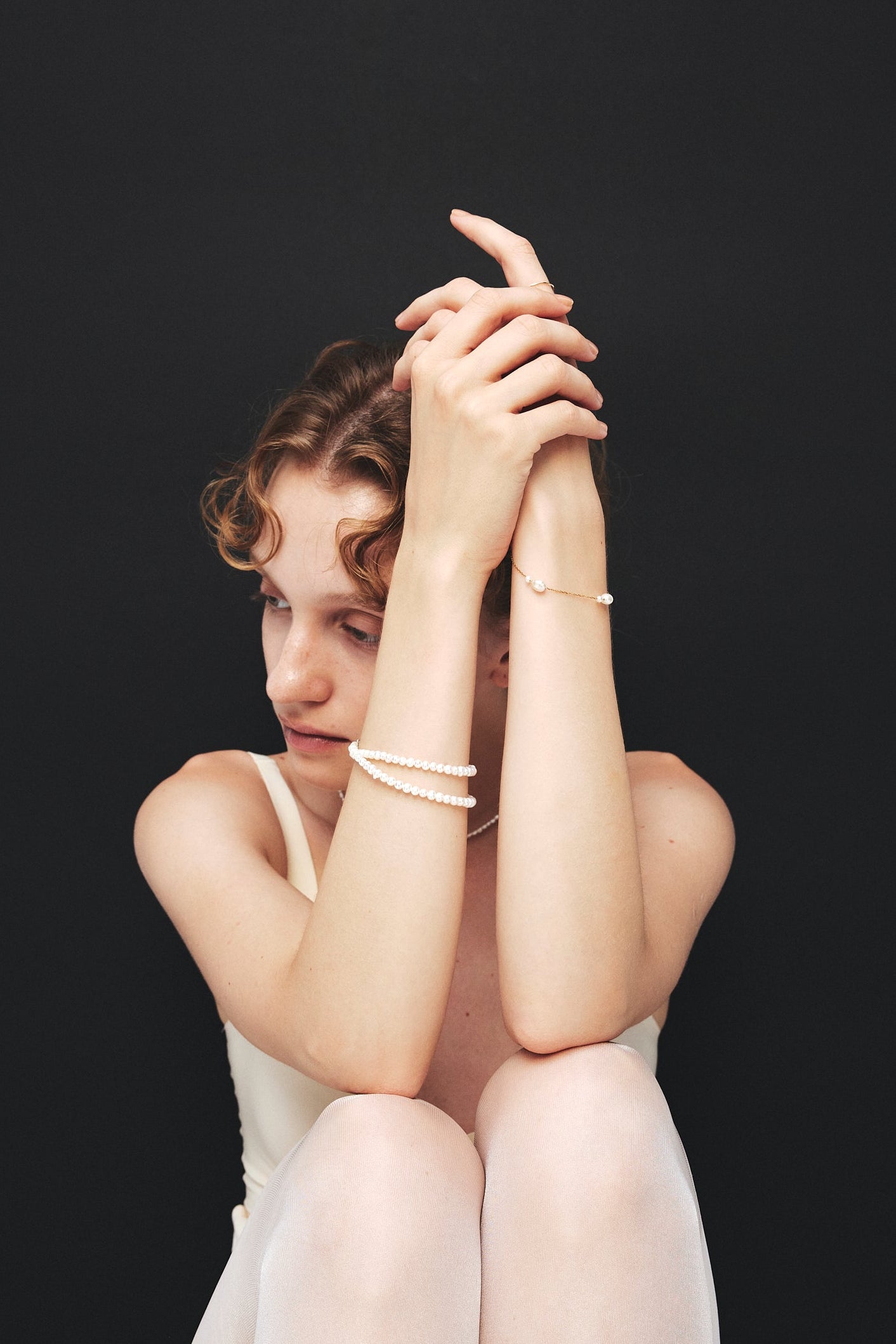 淡水パールの柔和な艶めきで、センシュアルな彩りを添えるブレスレット。