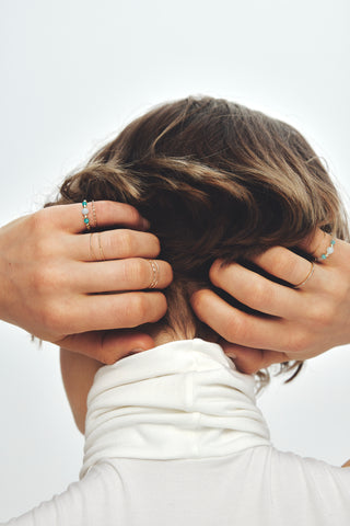 ゴールドのチェーンネックレスと重ねたら、プレーンなTシャツにもムードが加わります。