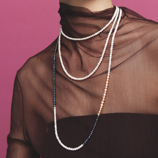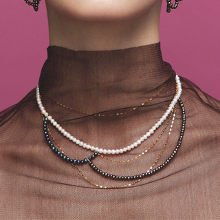 重厚なカラーパールと柔和な淡水パール、2色を切り替えたデザインに強さが宿るチョーカー。