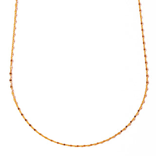 粒子の向きを交互にして並べたチェーンは、光が当たると揺らめくような輝きを放ちます。