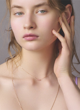 光に映える半貴石と繊細なクォーツのライン、先端にはvictoriaチェーンが揺れて神秘的な輝きを放ちます。