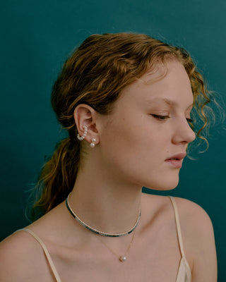 淡水パールとゴールドの粒子をアクセントに加え、都会的で洗練された表情に仕上げています。