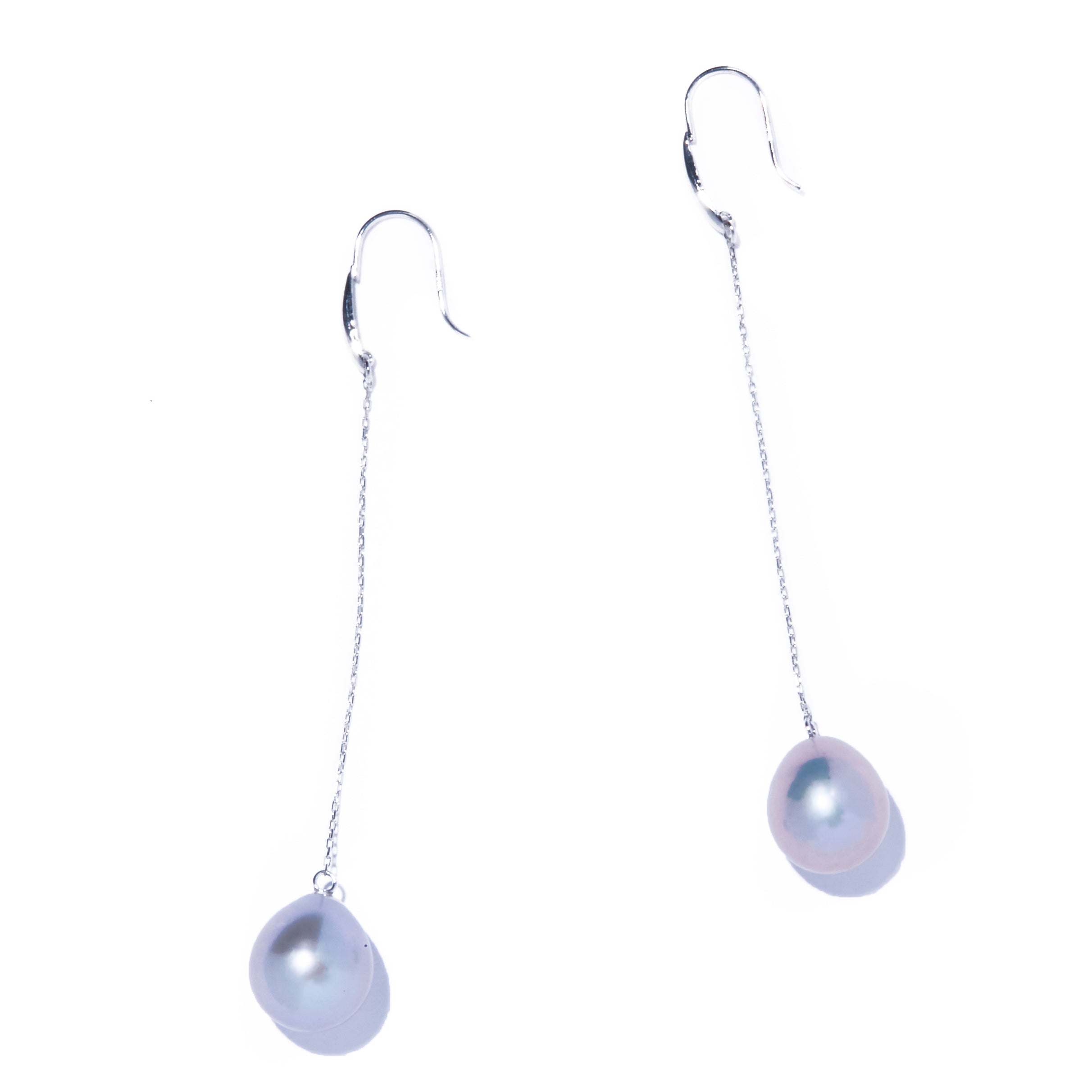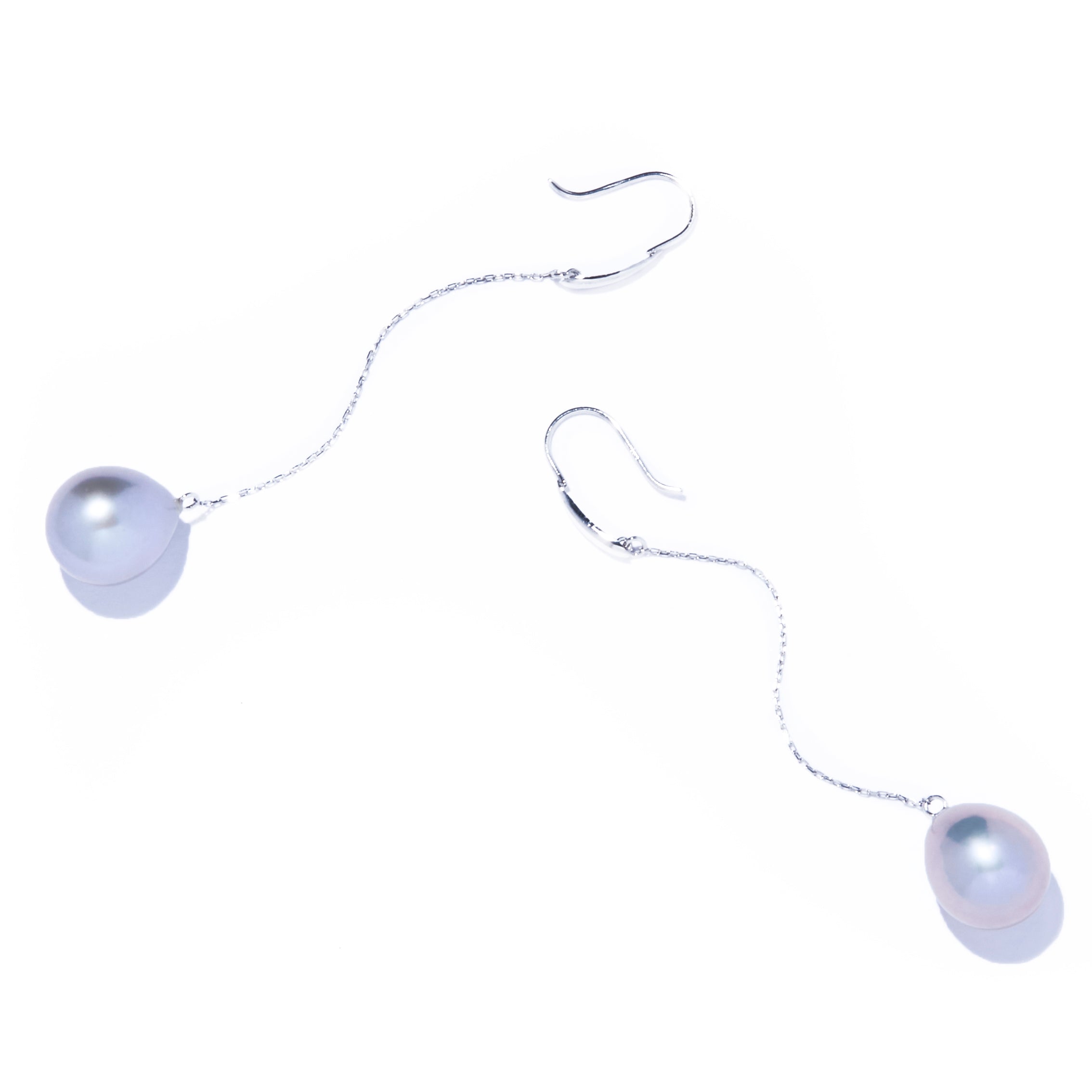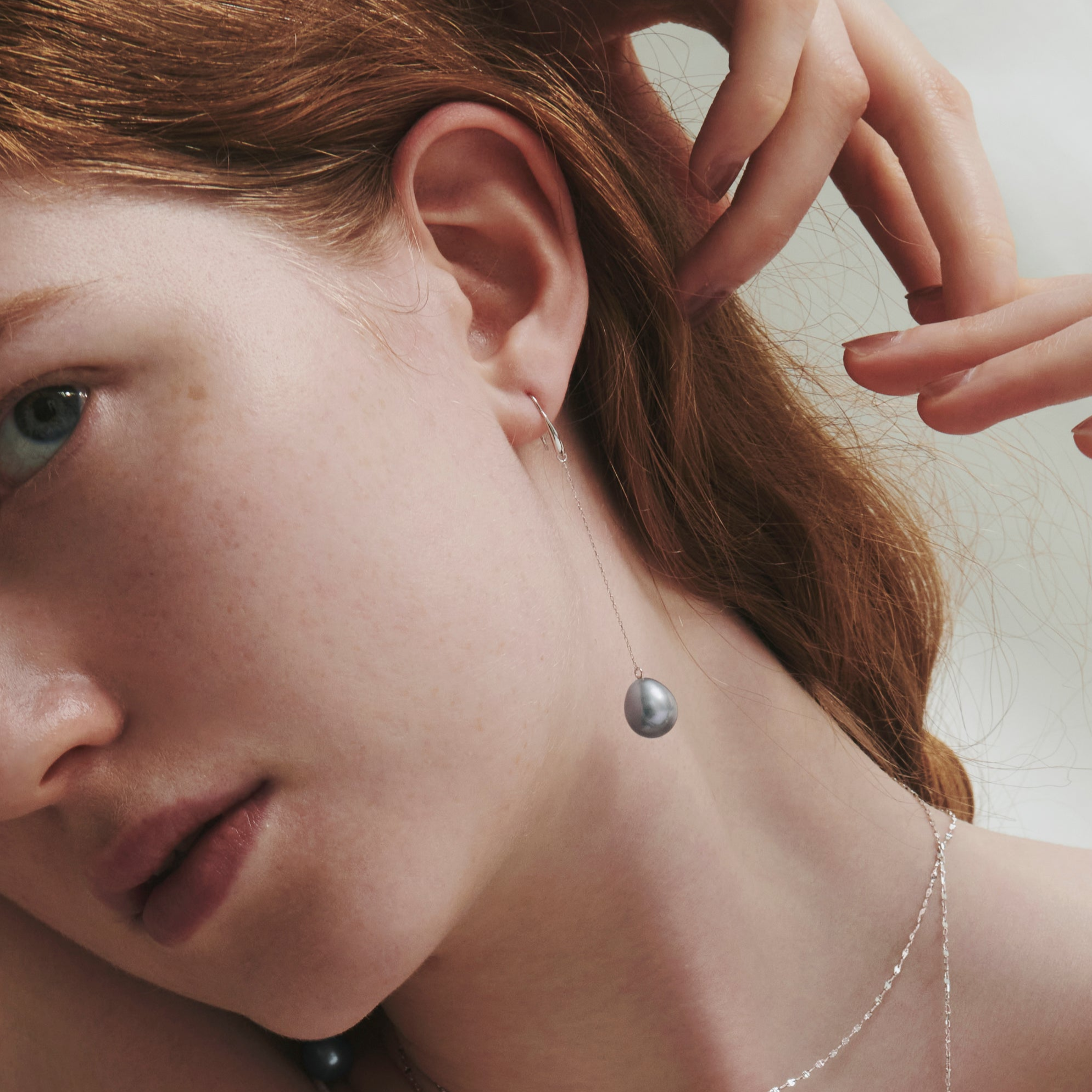 淡いグレーのヴェールを纏ったパールは成熟の美をたたえ、耳元で揺らめく流麗なフォルムとともに、知的な表情を実現します。