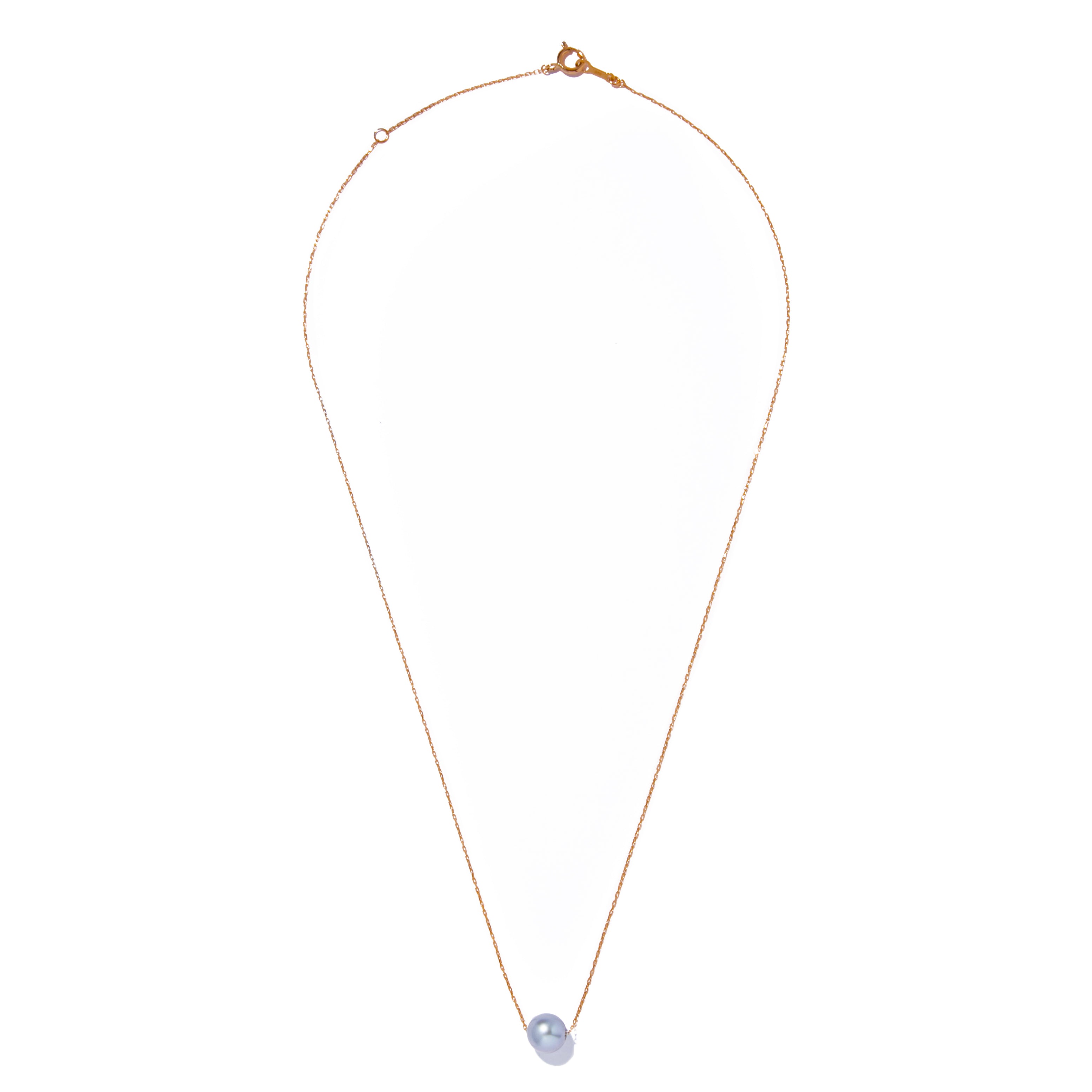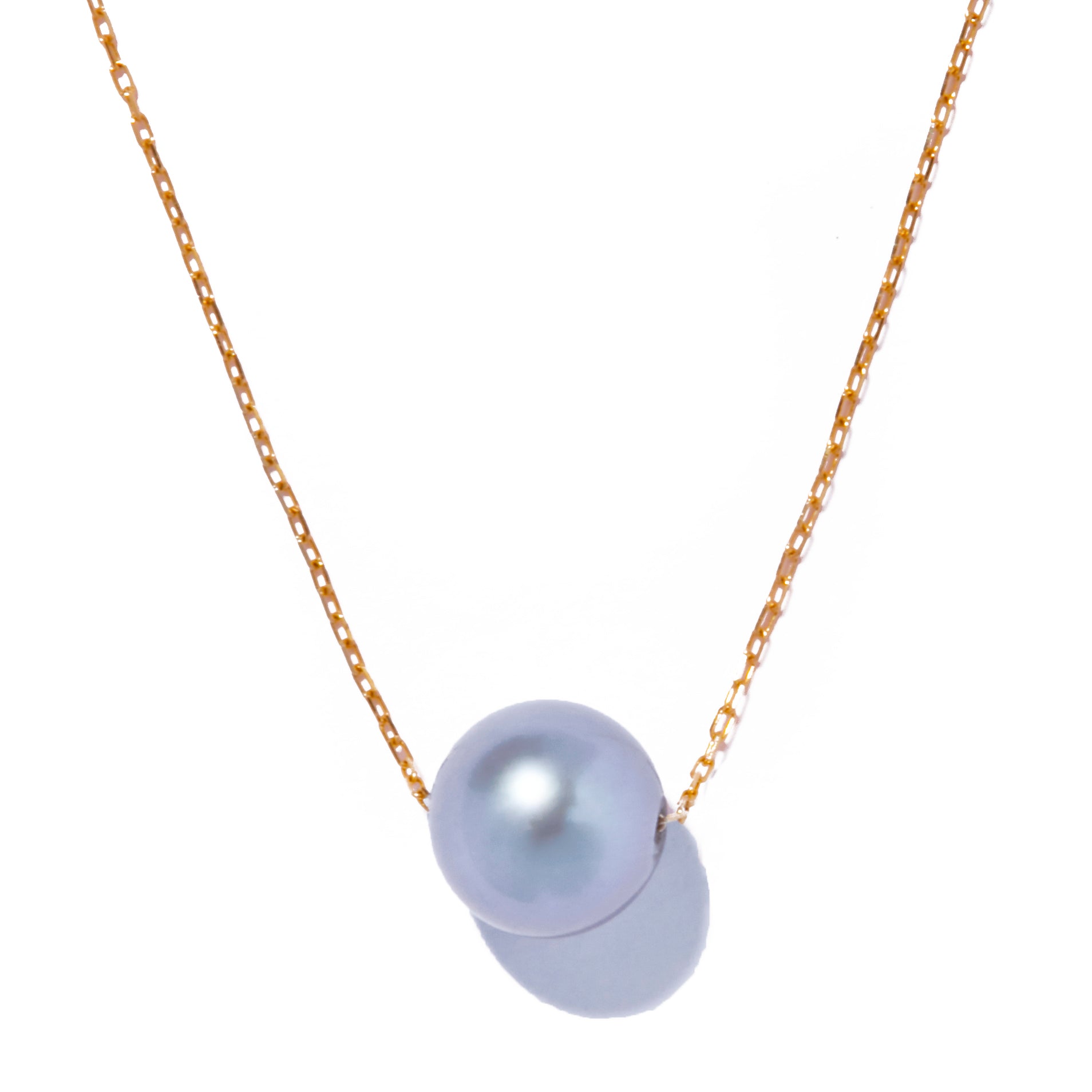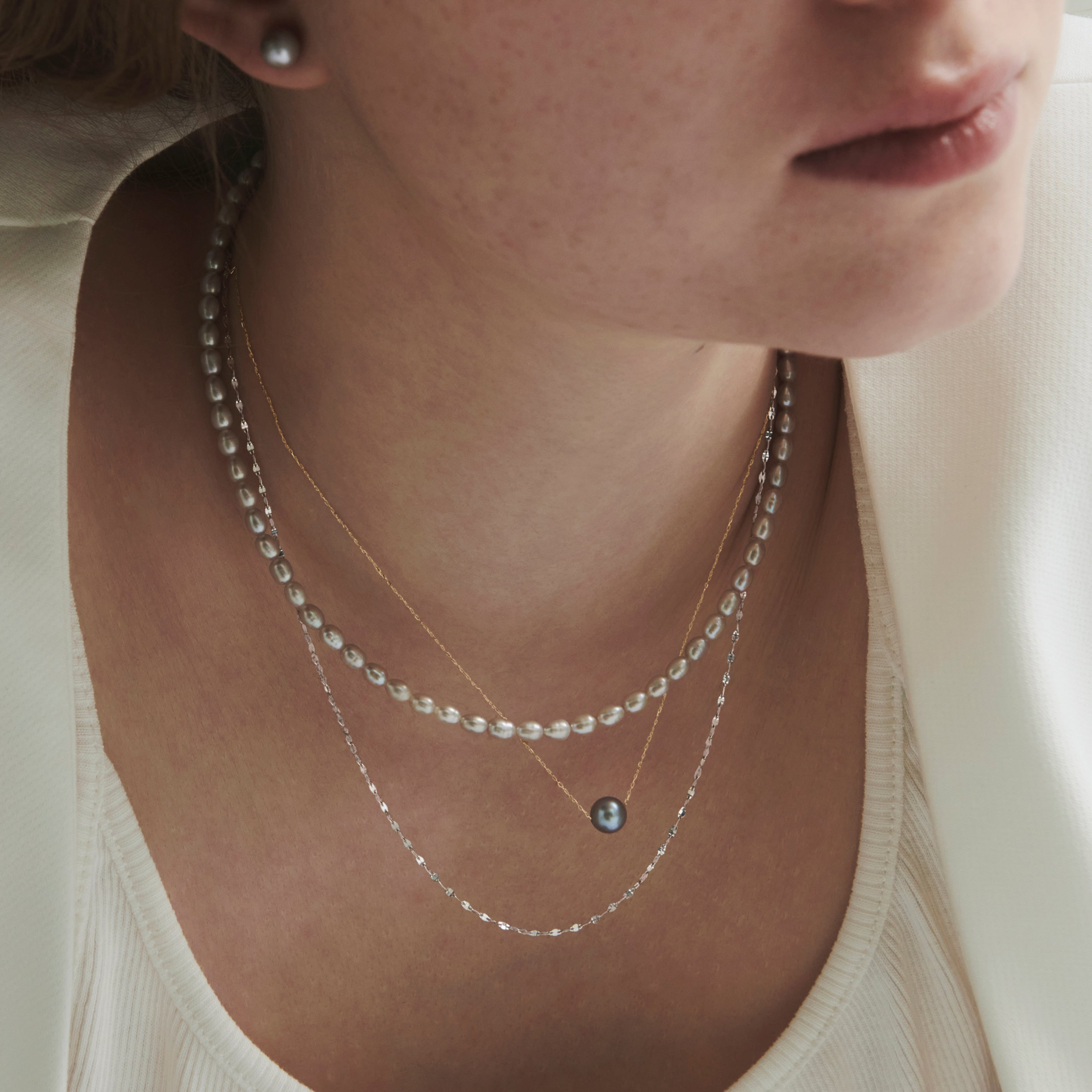 チャコールグレーの深みある光沢をたたえた、淡水パールのネックレス。