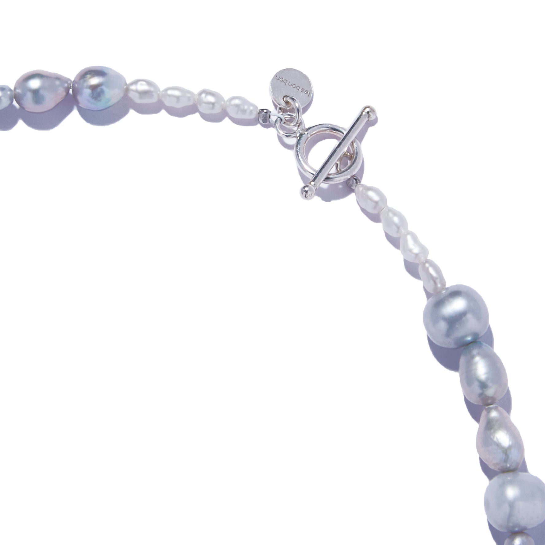 サイズや形状の異なる淡水パールをランダムに配し、情緒的な一面を表現。